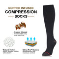 - COPPER COMPRESSION SOCKS: Copper is a great conductor of electricity, we extended its natural property to rejuvenate blood circulation through your legs through copper fibers capable reviving blood circulation along with providing a 15-20 mmHg compression. It offers the most perfect settlement scheme for those who sit for long period during travel or at work