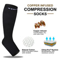 - COPPER INFUSED COMPRESSION SOCKS: Copper is a great conductor of electricity, we extended its natural property to rejuvenate blood circulation through your legs through copper fibers capable reviving blood circulation along with providing a 20 mmHg compression. It offers the most perfect settlement scheme for those who sit for long period during travel or at work.